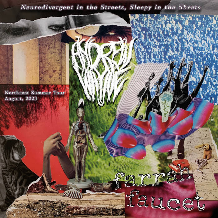 This tape was produced for the ‘Neurodivergent in the Streets, Sleepy in the Sheets’ Northeast Summer Tour with farrah faucet, August 2023. 50 cassettes were made for the tour and the rest were sold or given away by rain and andy.